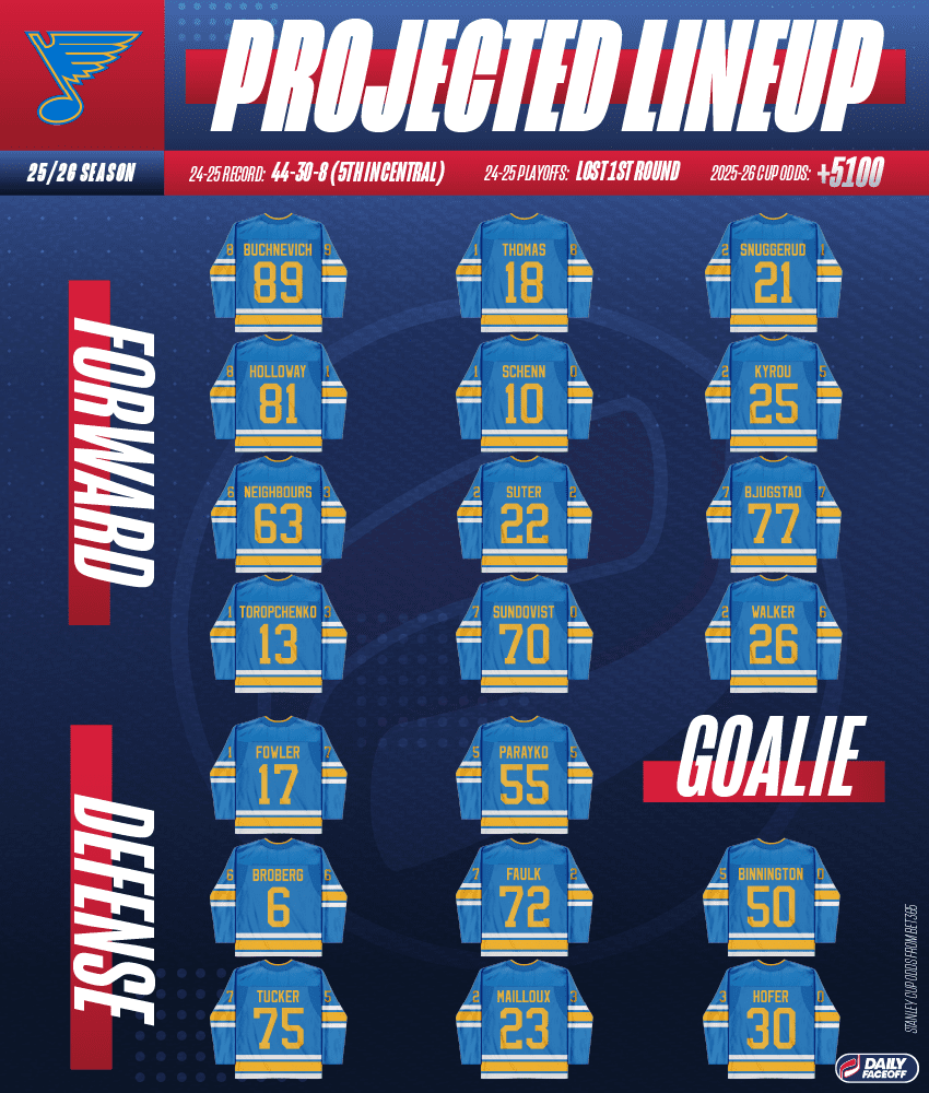 The Blues needed a remarkable 12-game win streak to make it to the postseason and looked better over the final 26 games than they had since at least 2022. Skeptics think it was all, to paraphrase Trainspotting, a blip on an otherwise downward trajectory. That assumes regression from at least Thomas, Fowler, and Parayko, all of whom played 70 games or fewer for St. Louis last season. It also assumes stagnation for Holloway, Broberg, Neighbours, and others.