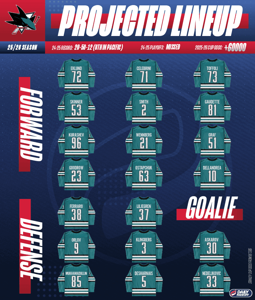 The Sharks last made the playoffs in 2018-19, and that’s not going to change next spring. With Gavin McKenna being the ultimate prize at the 2026 NHL Draft (with a few others looking to challenge), Grier and Co. will be solely focused on finding some incremental improvements while still finishing at the bottom of the standings. Maybe an improvement from 52 points last year to 58 would be appreciated by the fanbase.