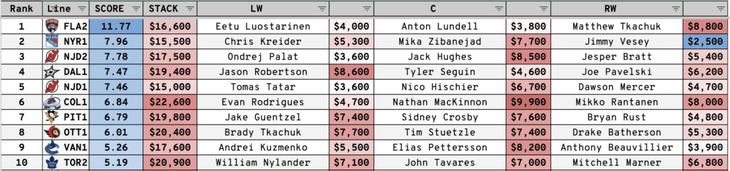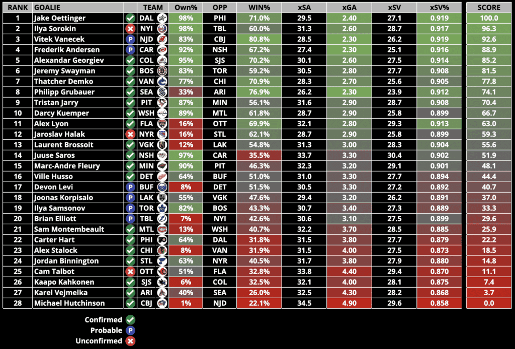 The Notebook includes everything you need to know to set your Season-Long and Daily Fantasy Lineups: including Injuries, Projected Lines and Pairings, Starting Goalie Rankings, and Value Picks (DFS).