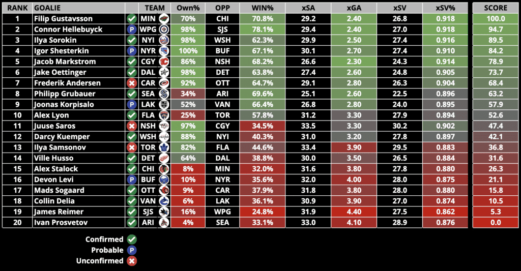 The Notebook includes everything you need to know to set your Season-Long and Daily Fantasy Lineups: including Injuries, Projected Lines and Pairings, Starting Goalie Rankings, and Value Picks (DFS).